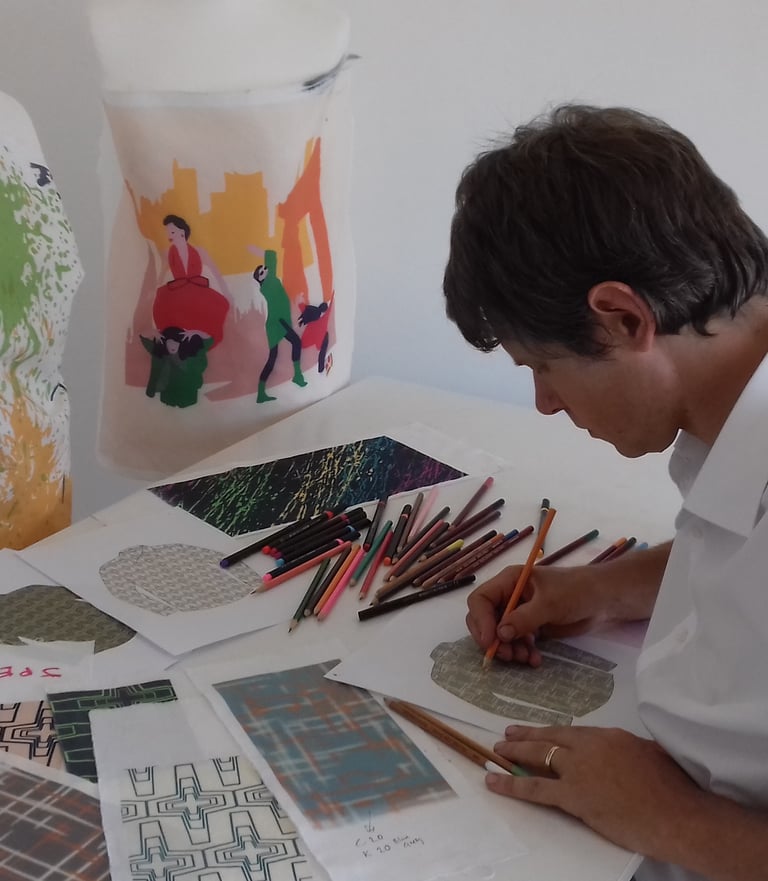 At squirrel prints.co.uk, we create screen-printed fabrics and turn them into clothing, cushions, and wall art.