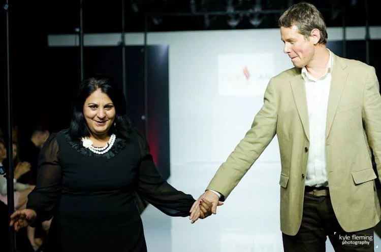 My name is Manjit Allen, that’s me in the photo in the black dress, holding my hand and dragging me onto the catwalk is my husband Jon Allen. That photo was taken at the Christian Fashion show in Tampa Florida February 2014. Jon and I showcased our first collection called Flexible Elegance together in Tampa, at that time we were called Narrowgate Fashion. Our products were mainly plus size ladies wear and printed mens handmade shirts.